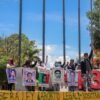 En el mitin, un dirigente del Comité Estudiantil de la Normal de Ayotzinapa, señaló que pese a la pandemia por la Covid-19, ellos no pueden dejar de salir a las calles para exigir justicia.
