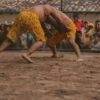 Luego se ve a personas agarrar y tirar cosas en lo más profundo de la hondanada.