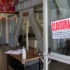 Foto 1. Los rostros de nueve de los 43 estudiantes desaparecidos la noche del 26 y madrugada del 27 de septiembre del 2014, en la ventana de una caseta del plantel.