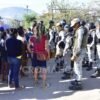 Por esa razón comenzó el enfrentamiento. Los familiares lanzaron palos y piedras contra los elementos de la Guardia Nacional y patrullas de la Policía Estatal que salian del penal.