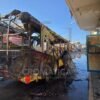 A los cadáveres amontonados encima de troncos de árbol le echan ramas secas y luego prenden fuego.