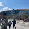 Funcionarios “retenidos”, puerta destrozada, vidrios rotos, gas lacrimógeno