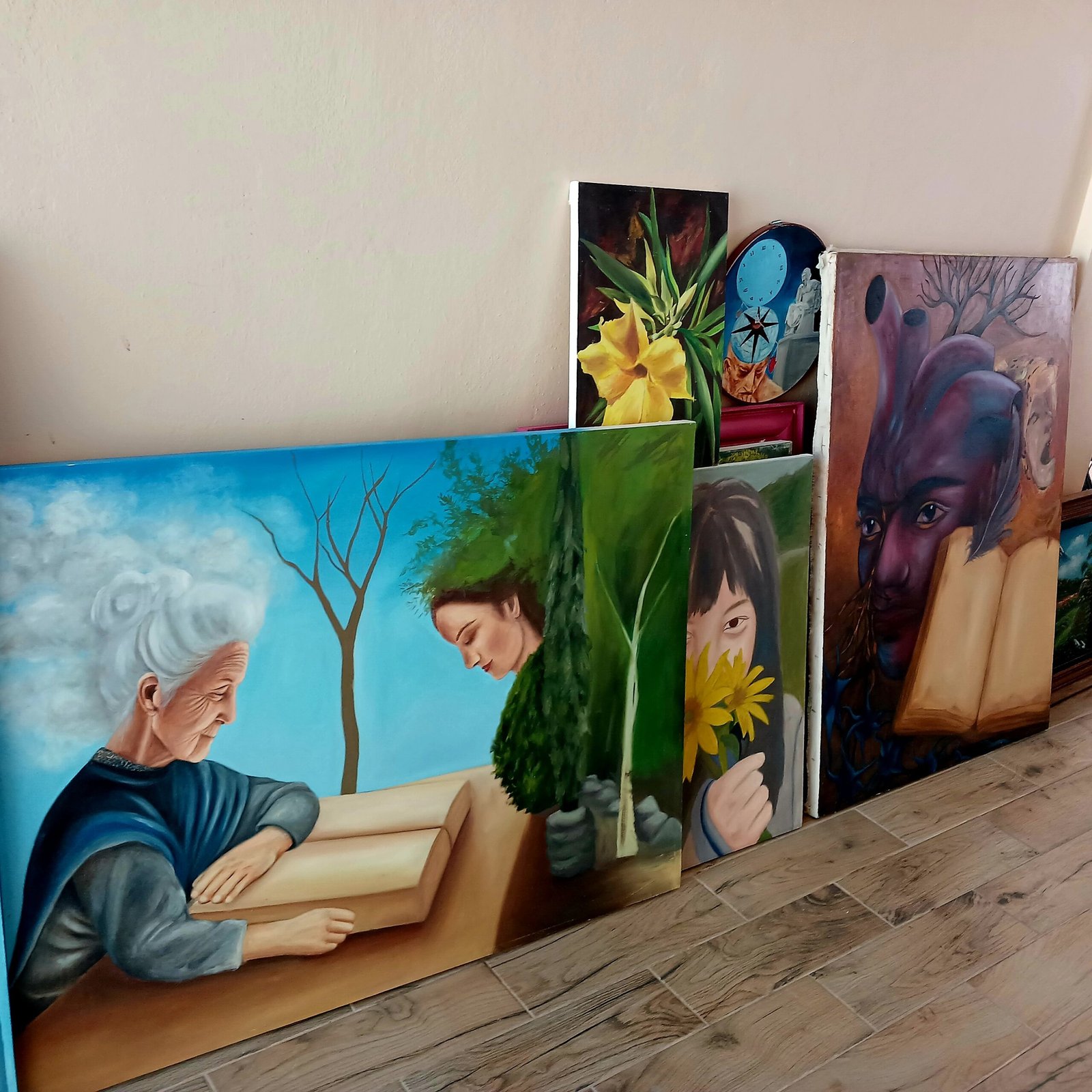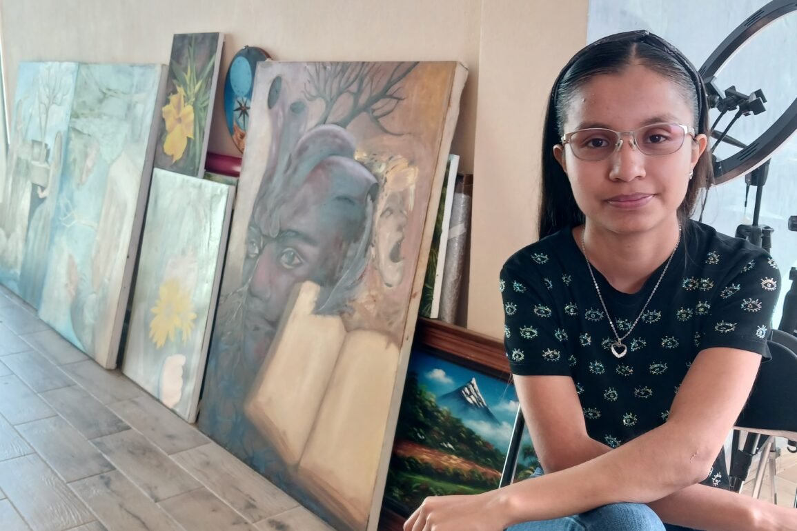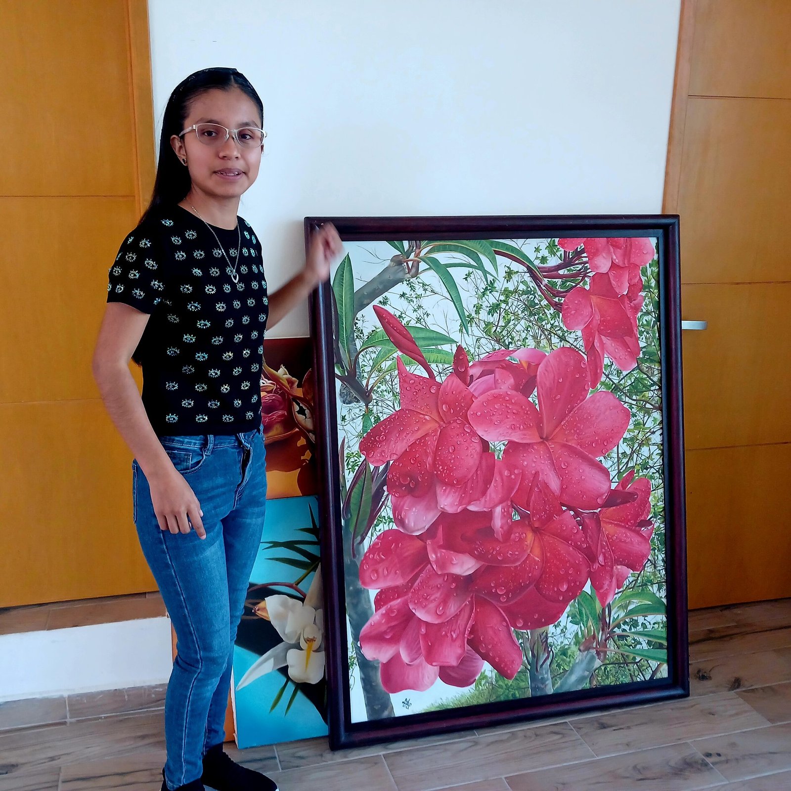 Es miércoles 14 de enero a las 9:40 de la mañana. El pasillo de la sala es amplia, con cuadros en fila recargados sobre la pared; son de distintos tamaños, construidos con las técnicas del hiperrealismo y el surrealismo en óleo. Representan el crecimiento de una adolescente artista que comenzó con gis pastel seco y cinco obras; desde entonces, hace casi siete años, suma 80, donde ha fusionado nuevos estilos, técnicas y conceptos.