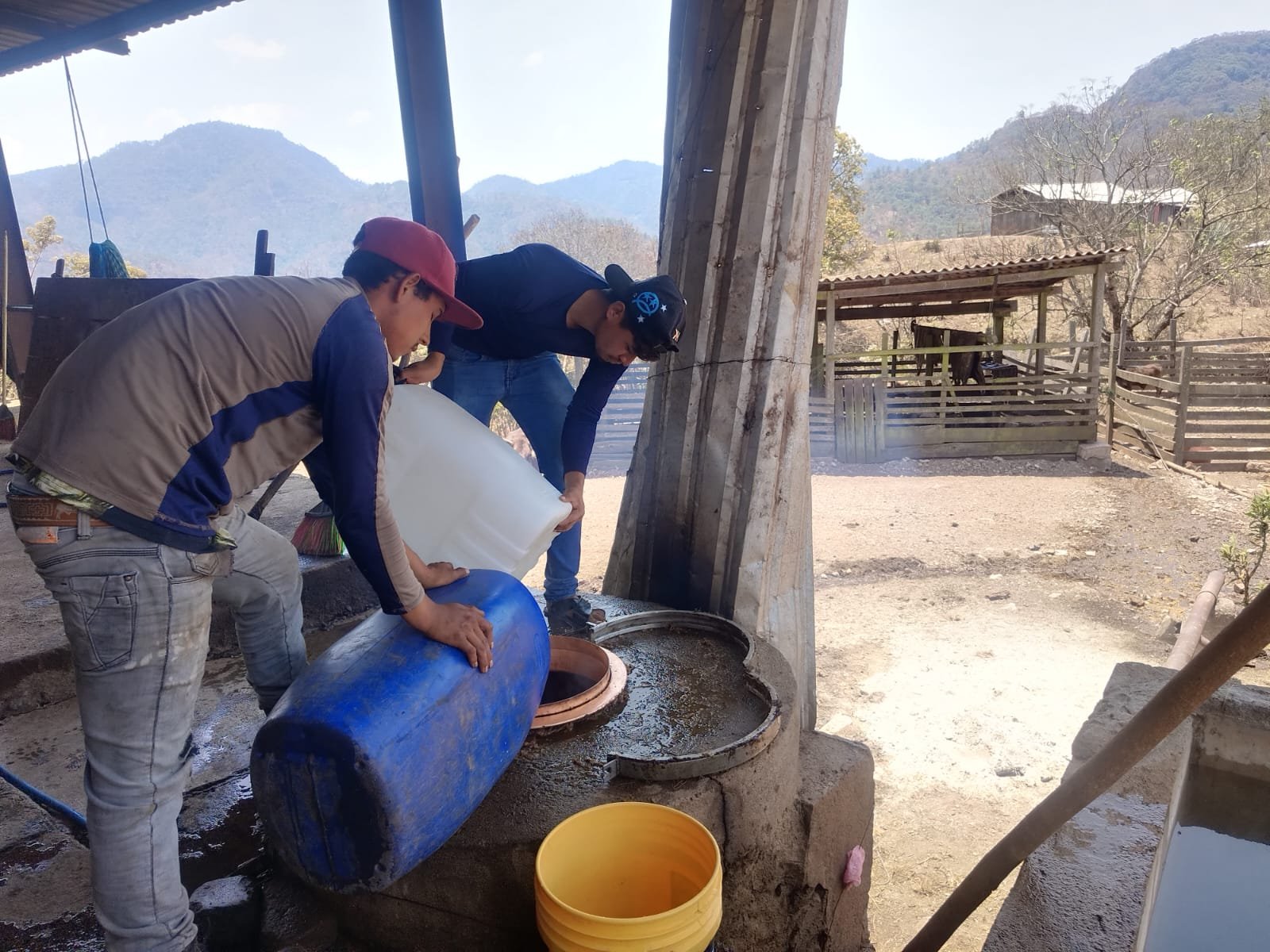 Los hermanos Rodrigo y David Hernández, de 19 y 20 años, quienes en una visita al lugar el sábado 18 de abril pasado, producían sus propias cargas de mezcal en la vinata, son sus sobrinos. Aprendieron a los ocho y 12 años. Conocen todo el proceso, porque han sido desde arrieros, quienes cortan las planta del maguey en los cerros y llevan en burros o mulas las piñas hasta la fábrica; han horneado, para que el maguey suelte su azúcar que es crucial para la destilación: las cuecen en un hueco profundo que hacen sobre la tierra; trituran o pican las piñas para después pasarla a los cueros, donde dejan que se fermenten de cinco a ocho horas, y al final ese fermento lo pasan al alambique.